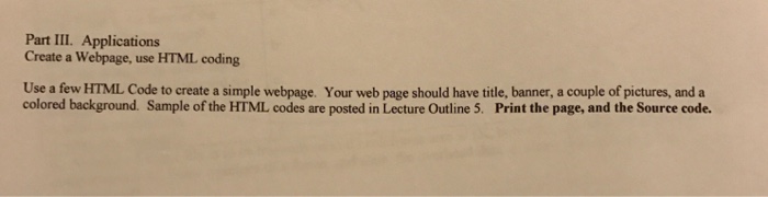 Solved: Create A Webpage, Use HTML Coding Use A Few HTML C... | Chegg.com