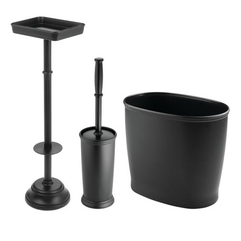 Mdesign 3 Piece Plastic Trash Can Toilet Brush Tissue Stand Shelf Set Black Target