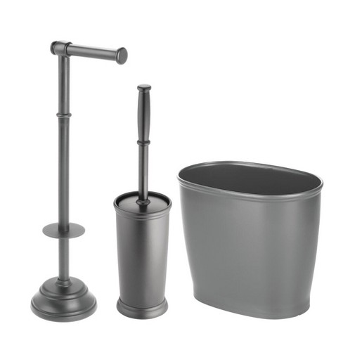 Mdesign 3 Piece Plastic Trash Can Toilet Brush Tissue Stand Set Target
